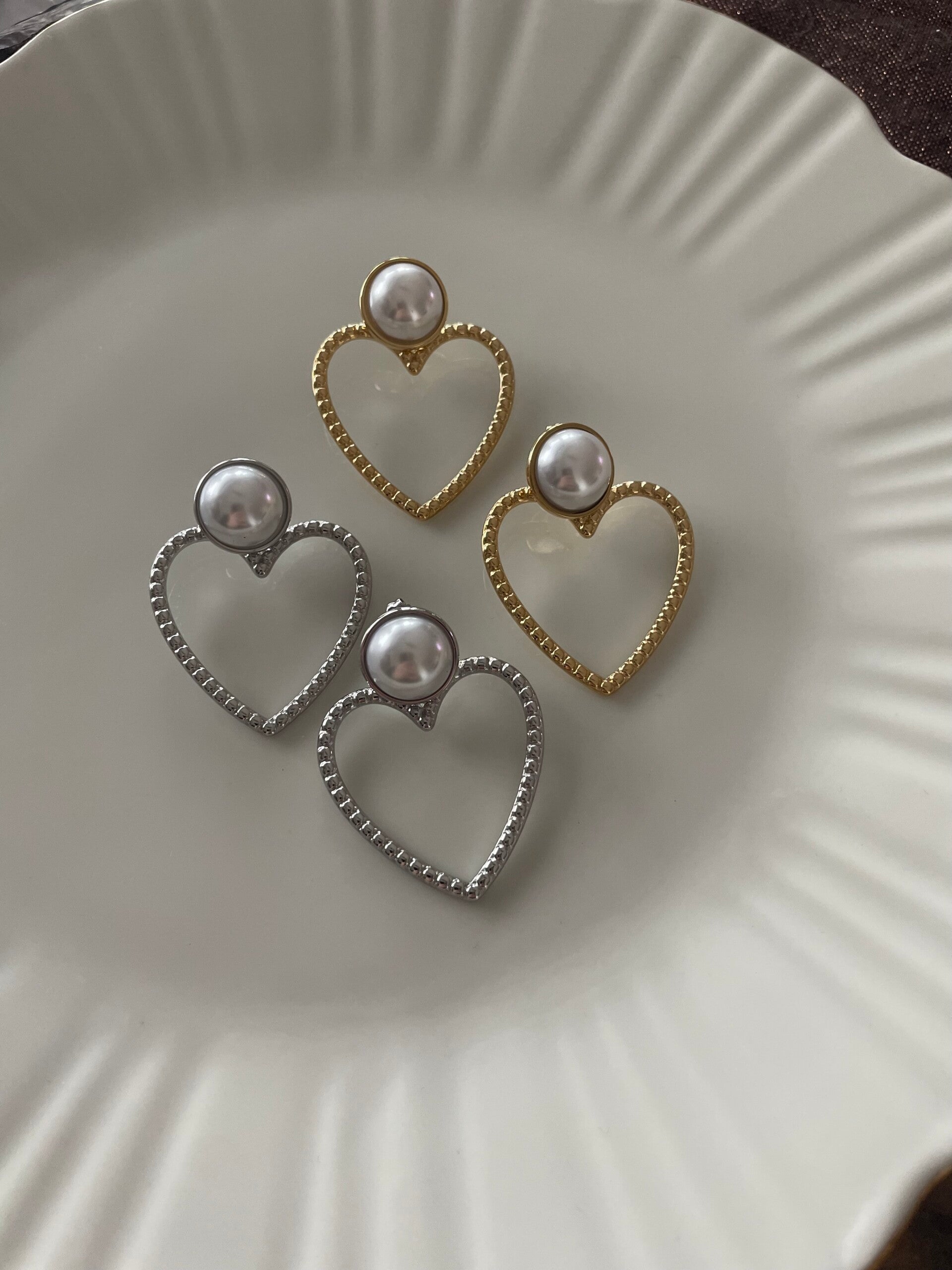 Hoe leuk zijn deze fijne hart oorbellen afgewerkt met een mooie parel?! Deze oorbellen zijn in goud en zilver te verkrijgen, gemaakt van Stainless steel& parel! Afmetingen: 3,19x 4,34cm.